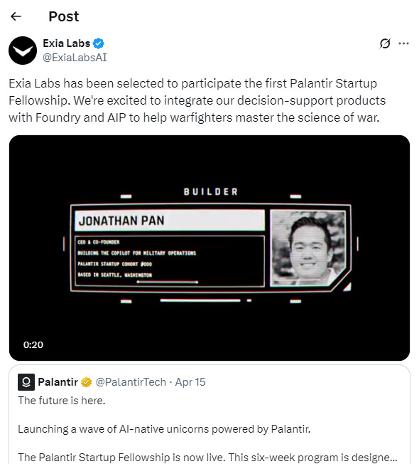 3. They have been selected to participate in the first Palantir Startup Fellowship (This is really huge, given that Palantir is a pioneer and leader in the defense software startup game)
