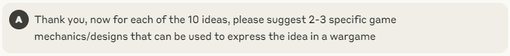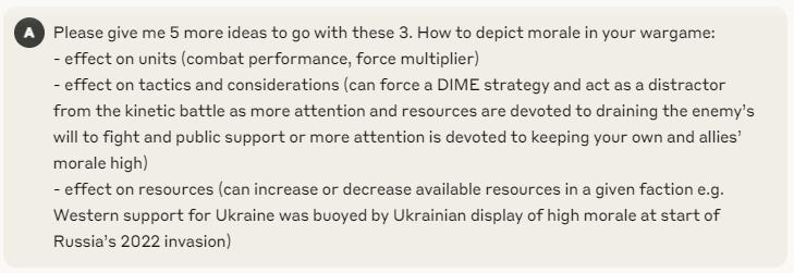 But yes, I see why AI players have no place in analytical wargaming: I think in that realm, AI will best be applied to adjudication and analysis. Also, in this War on the Rocks piece from 2019 that I recently shared, Dr. Ed McGrady accused “analytical wargaming” of being an intentionally vague term “that can mean anything, and often does.” Hopefully, the issues he raised have since been addressed.